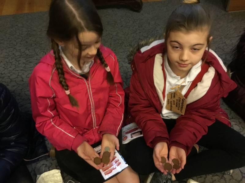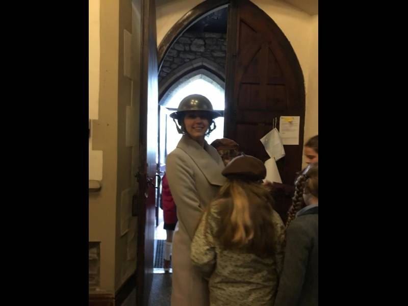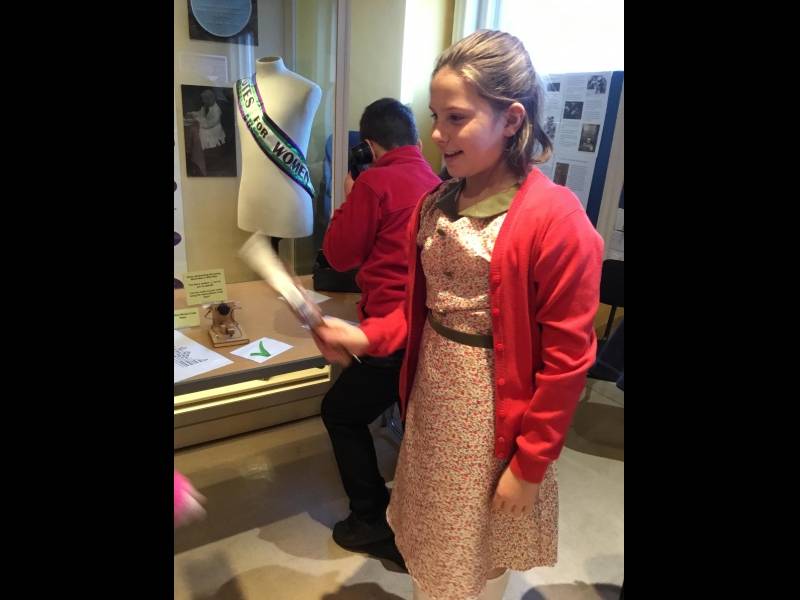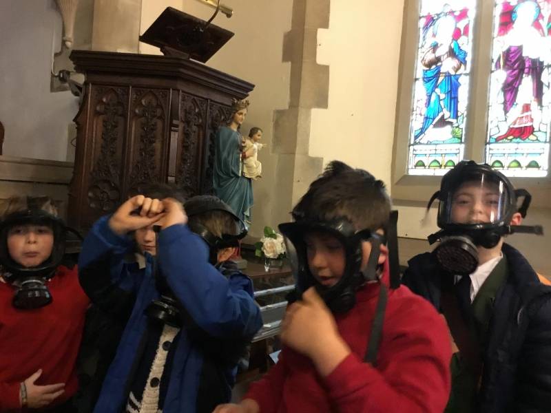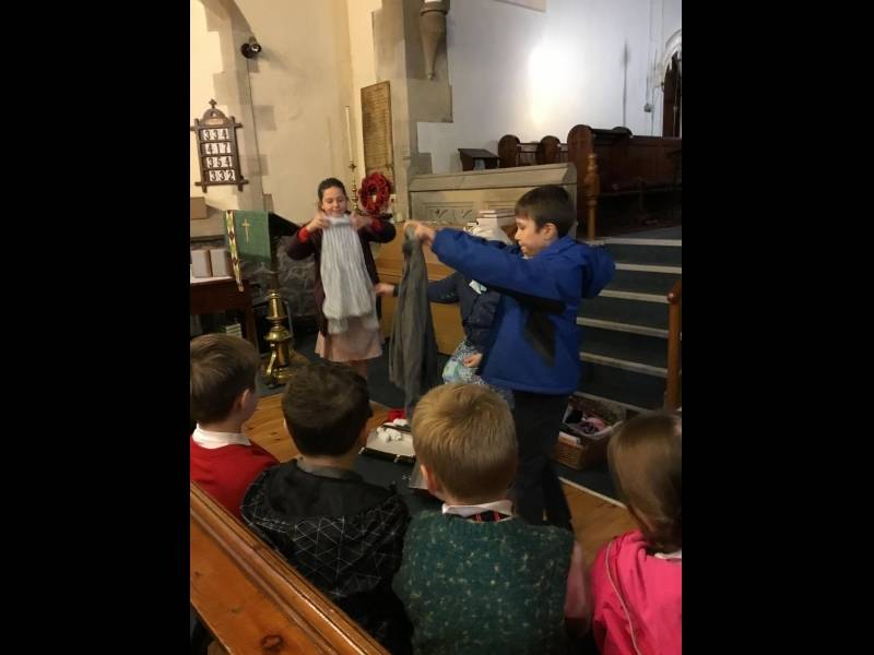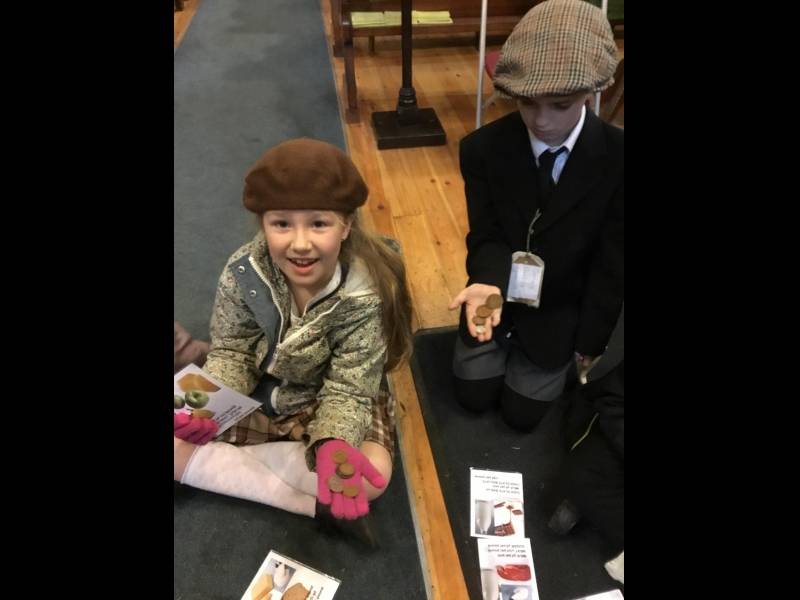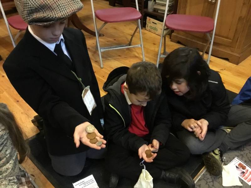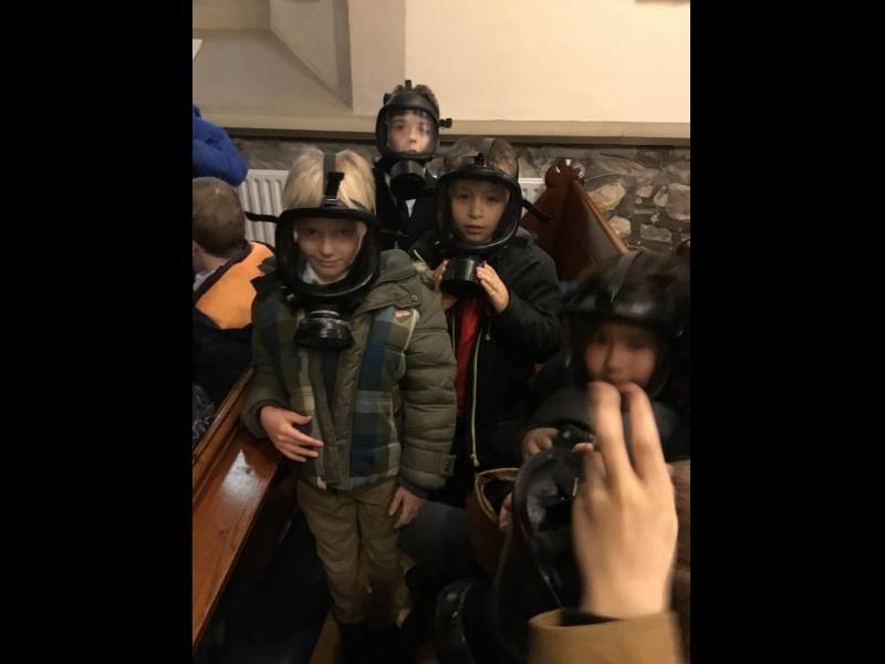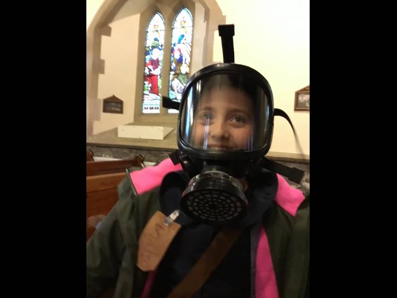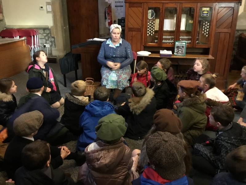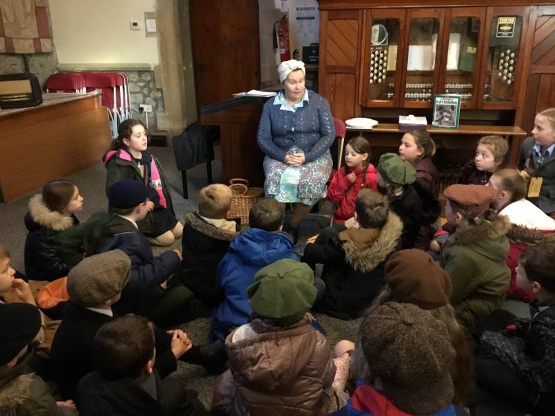 We were met in the morning by Ada Davies, who told us lots about the war and what life would have been like for children and families back then. The children checked evacuee's suitcases to make sure they had everything they would need, made lists from ration books (most people ran out of their ration stamps), tried on gas masks and worked through shopping lists with old money. We had all just sat down to have a nice rest and listen to the wireless when the air raid siren sounded! We quickly grabbed our gas masks and set off for the shelters.