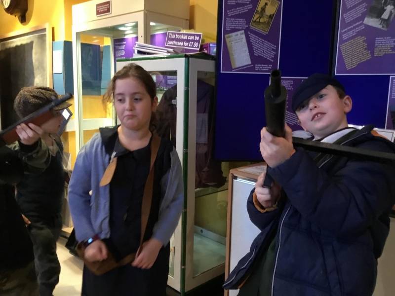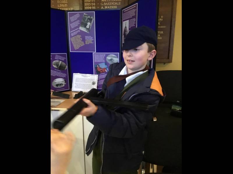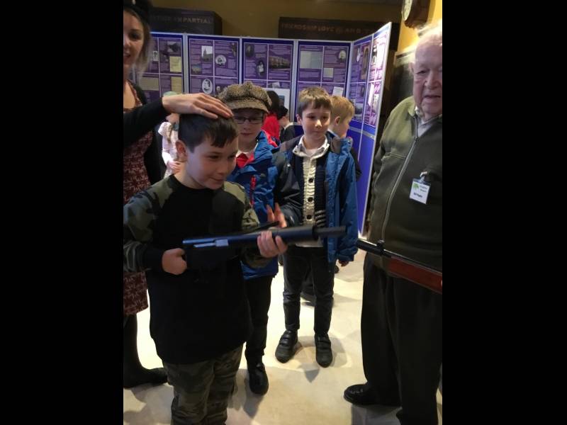 After a hearty evacuee lunch, we set off for Congleton Museum where once again we were met by Ada Davies. Throughout the afternoon, Mr Bill Pegley led us through his time in the war. Mr Pegley was just a child during the war and had many tales to tell us. Around the room were lots of artefacts and replicas of bullets, guns, Morse keys and Anderson shelters which Mr Pegley had made himself and which the children loved looking at! He was also kind enough to answer lots of questions from the children, which meant they got a first-hand experience of life back then.